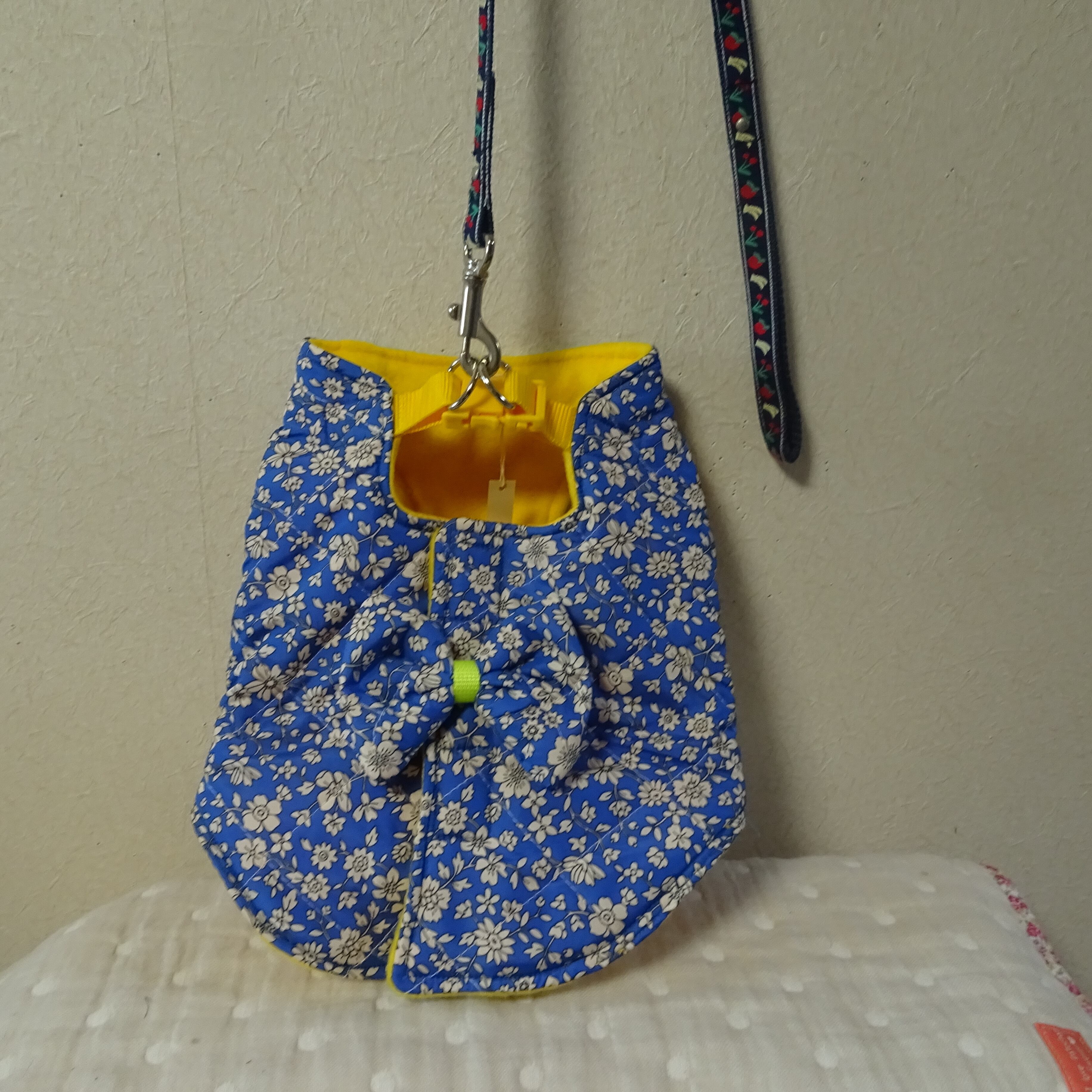 【ブルー】ナイロンキルティング地:ハーネスコート(Lサイズ~LLサイズ)