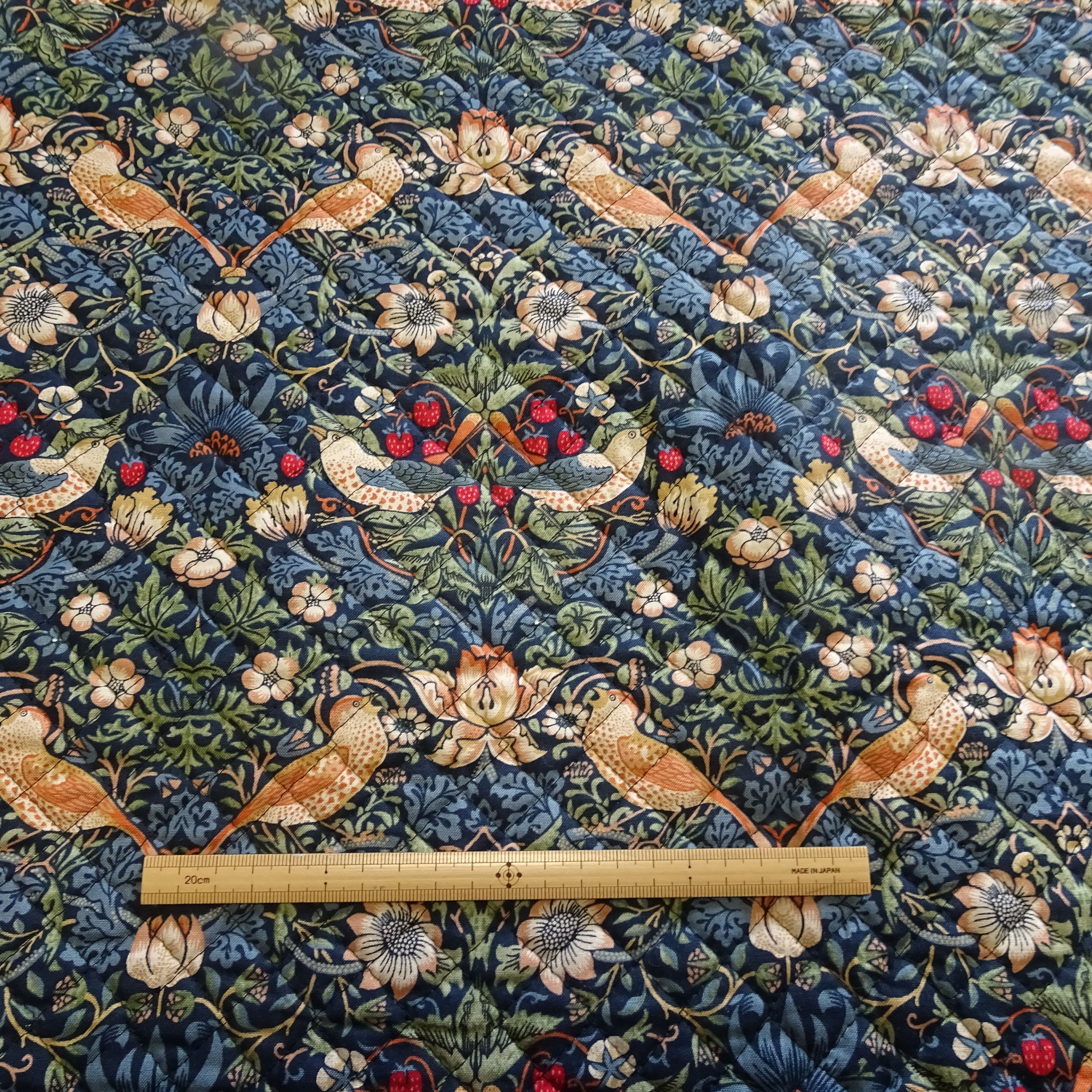 【ウイリアムモリス:いちご泥棒紺】綿キルティング地:ハーネスコート(Lサイズ~LLサイズ)