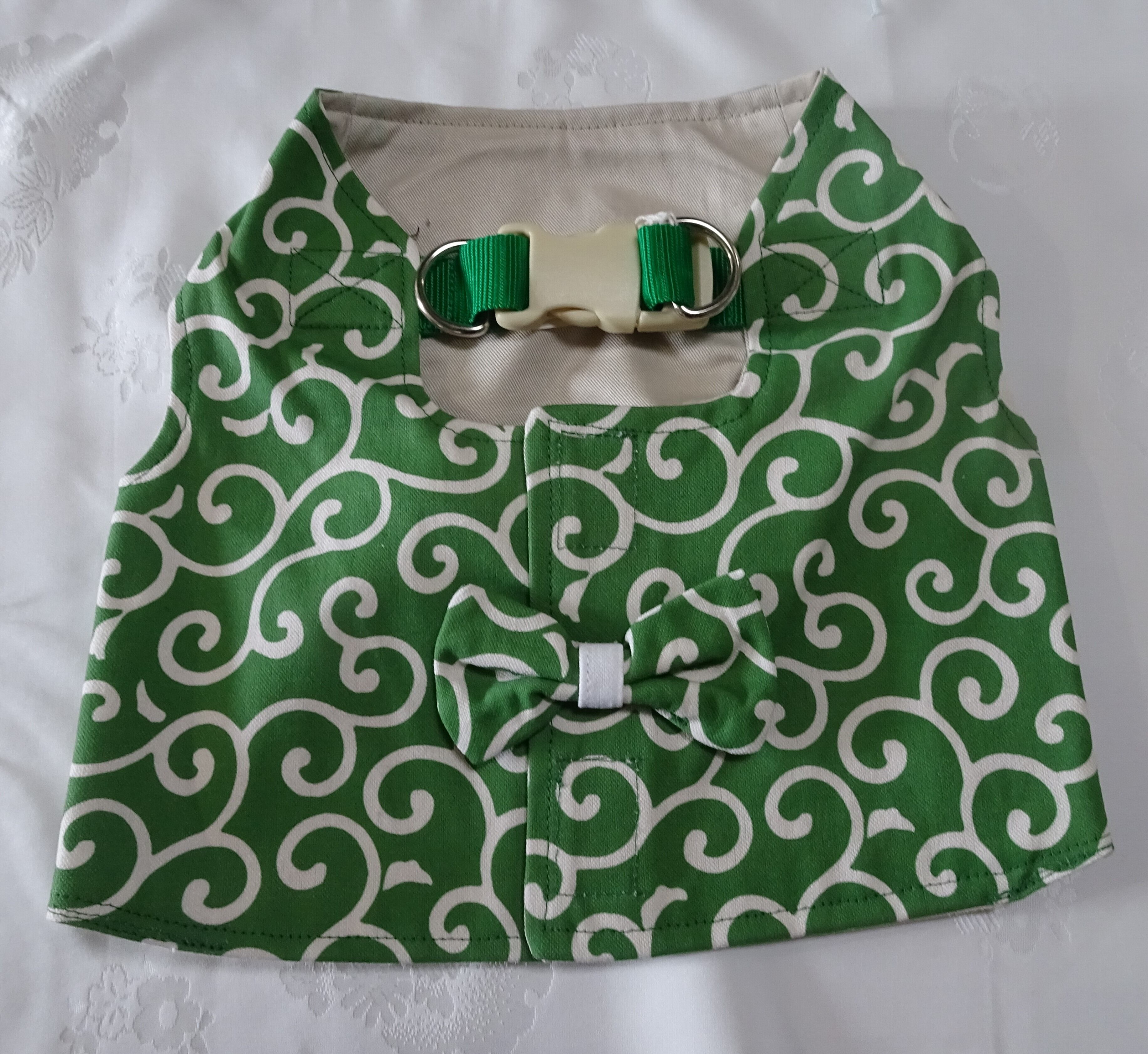 4L:唐草模様柄:緑ショート丈ハーネス服(裏地:ベージュ)