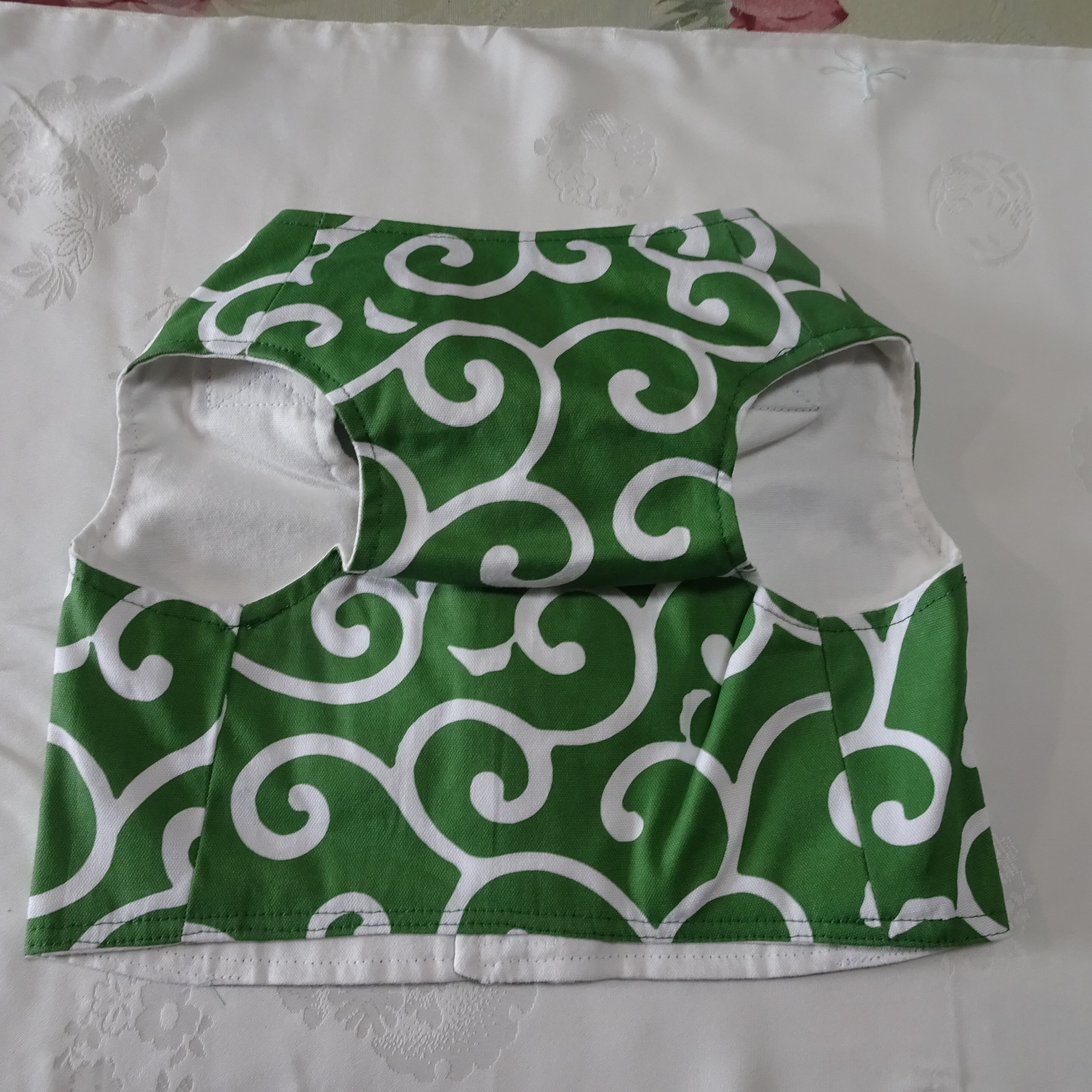 4L:唐草模様柄:緑ショート丈ハーネス服(裏地:白)
