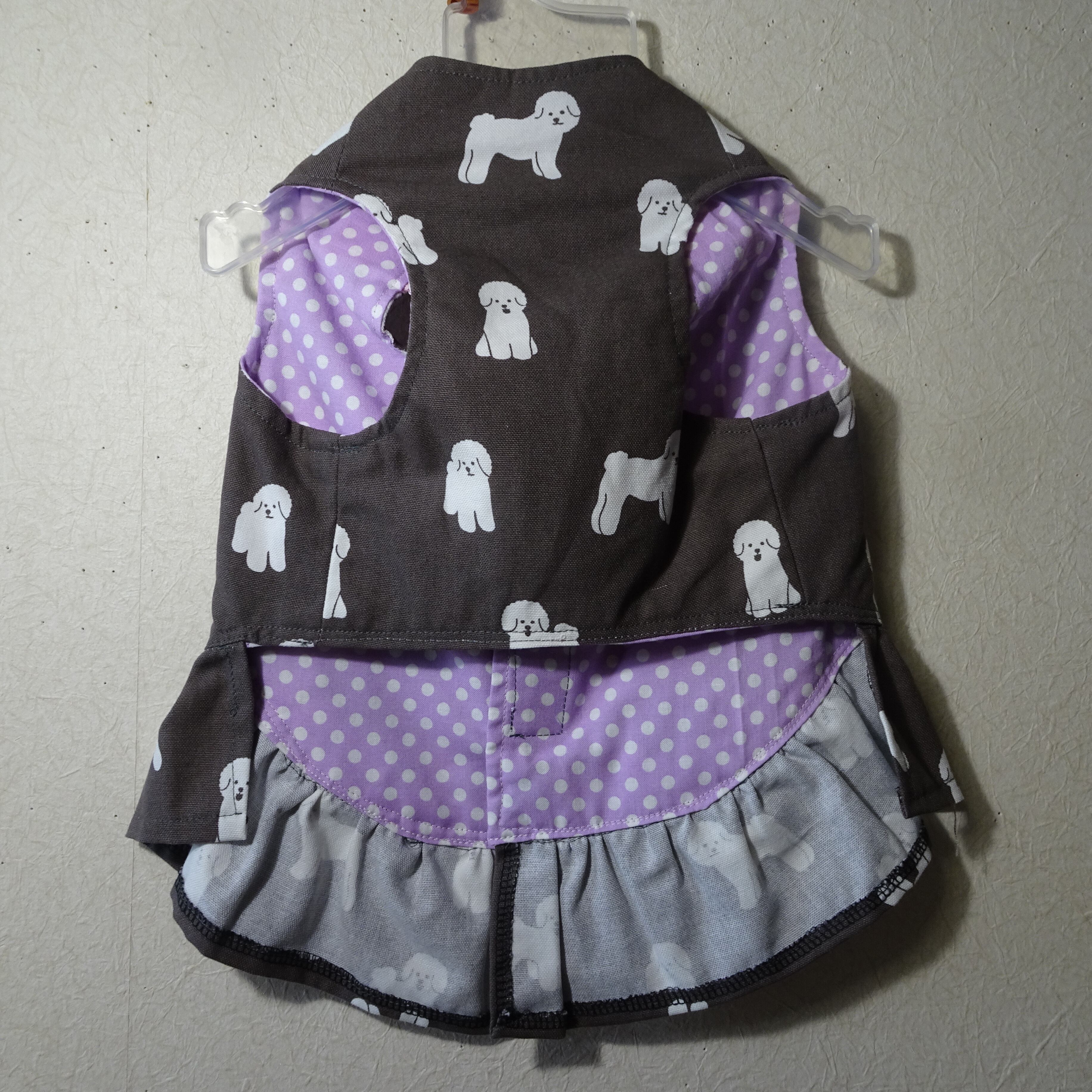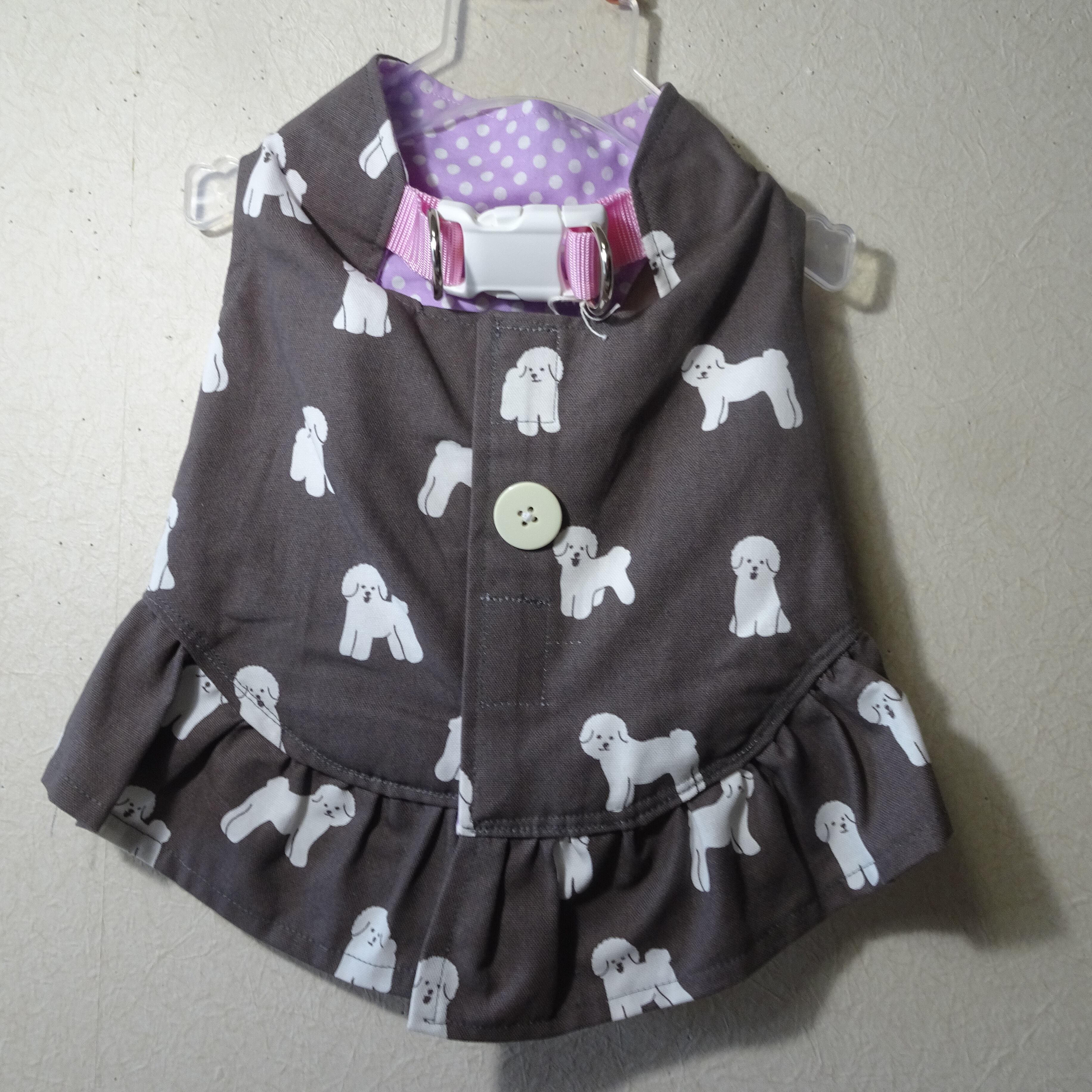 LL:ビションフリーゼ柄チャコールグレー:ロング丈ハーネス服(スカート付)