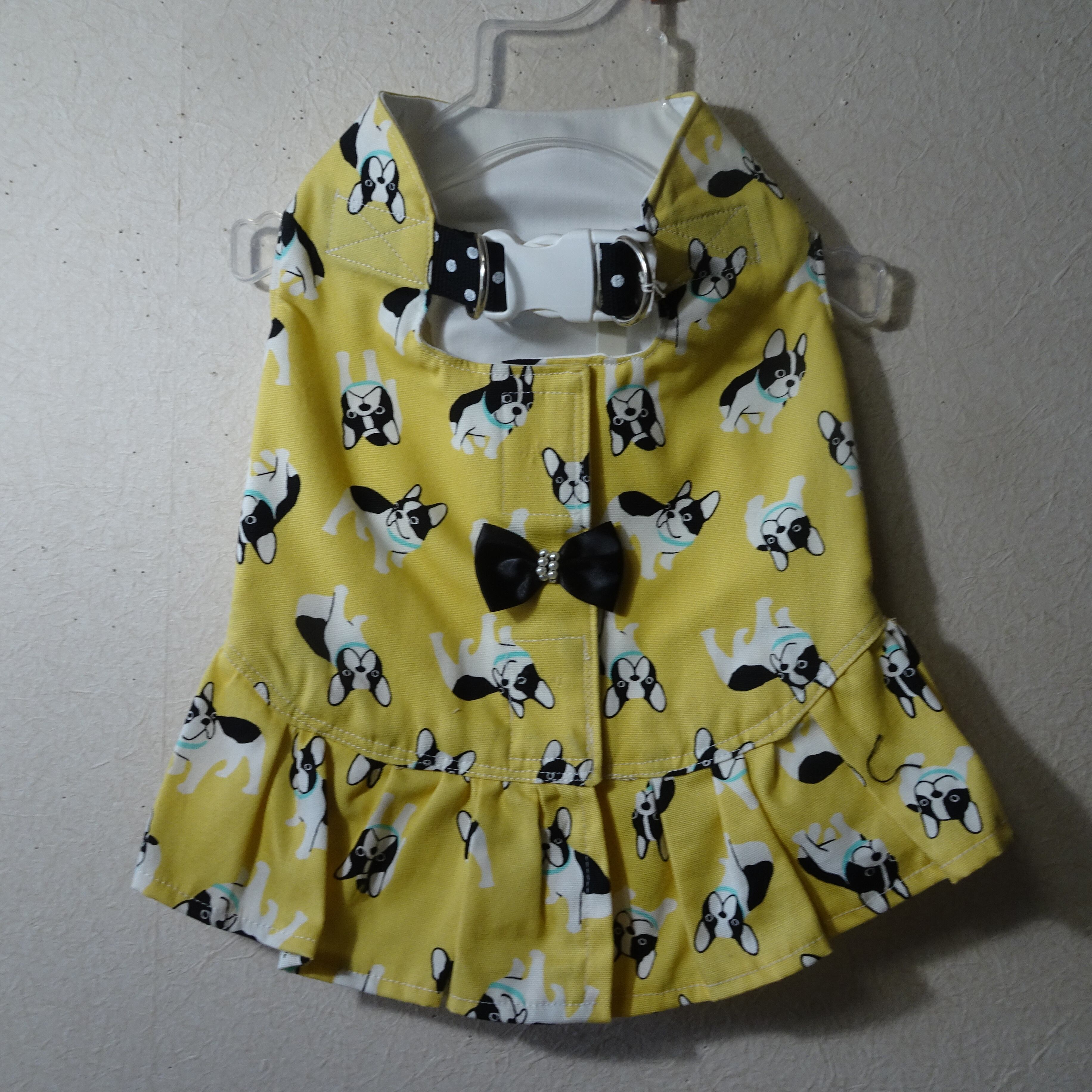 LL:フレンチブル・黄色:ロング丈ハーネス服(フリル付)&バックセット