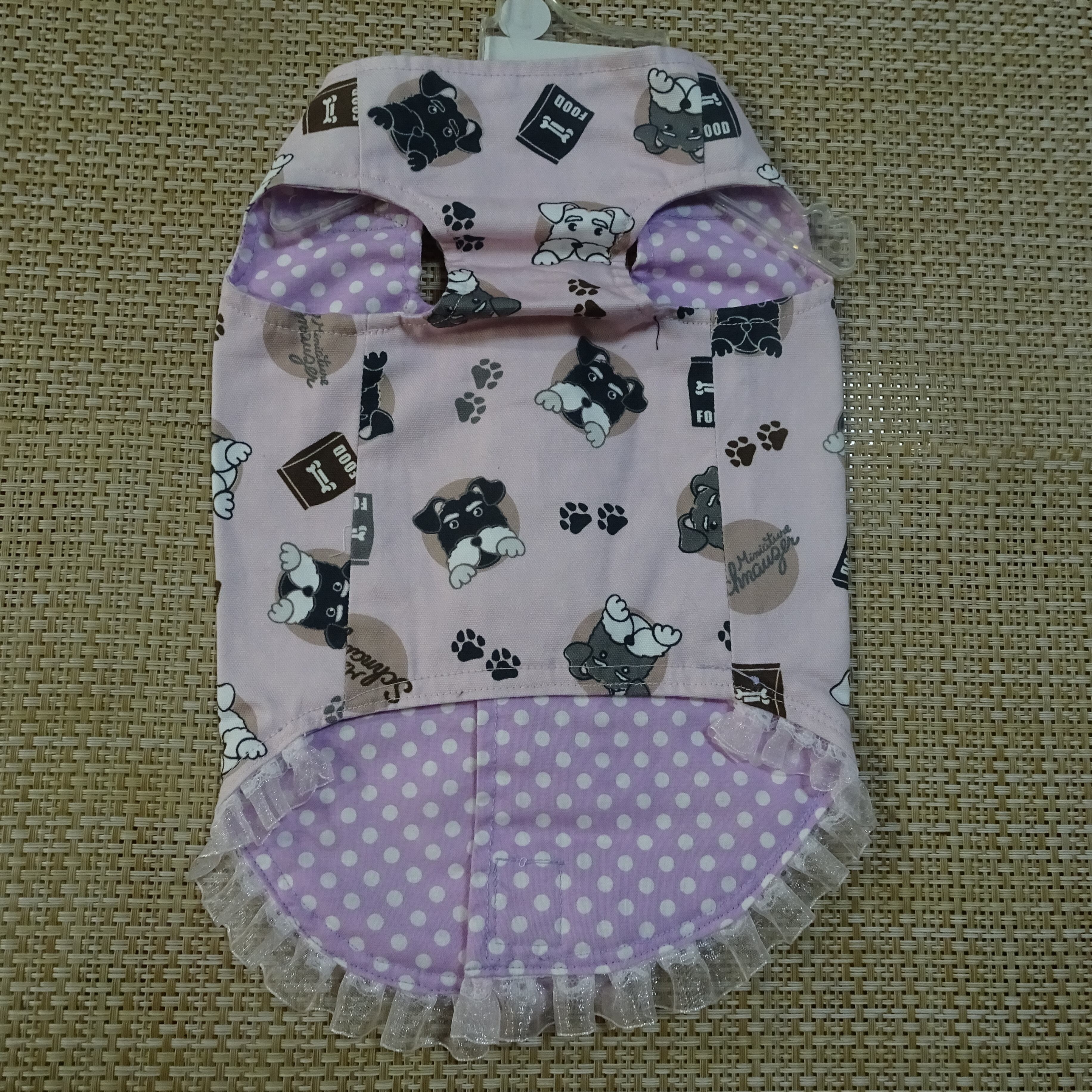 L:シュナウザー柄・ピンク系:超ロング丈ハーネス服(フリル付)&バックセット
