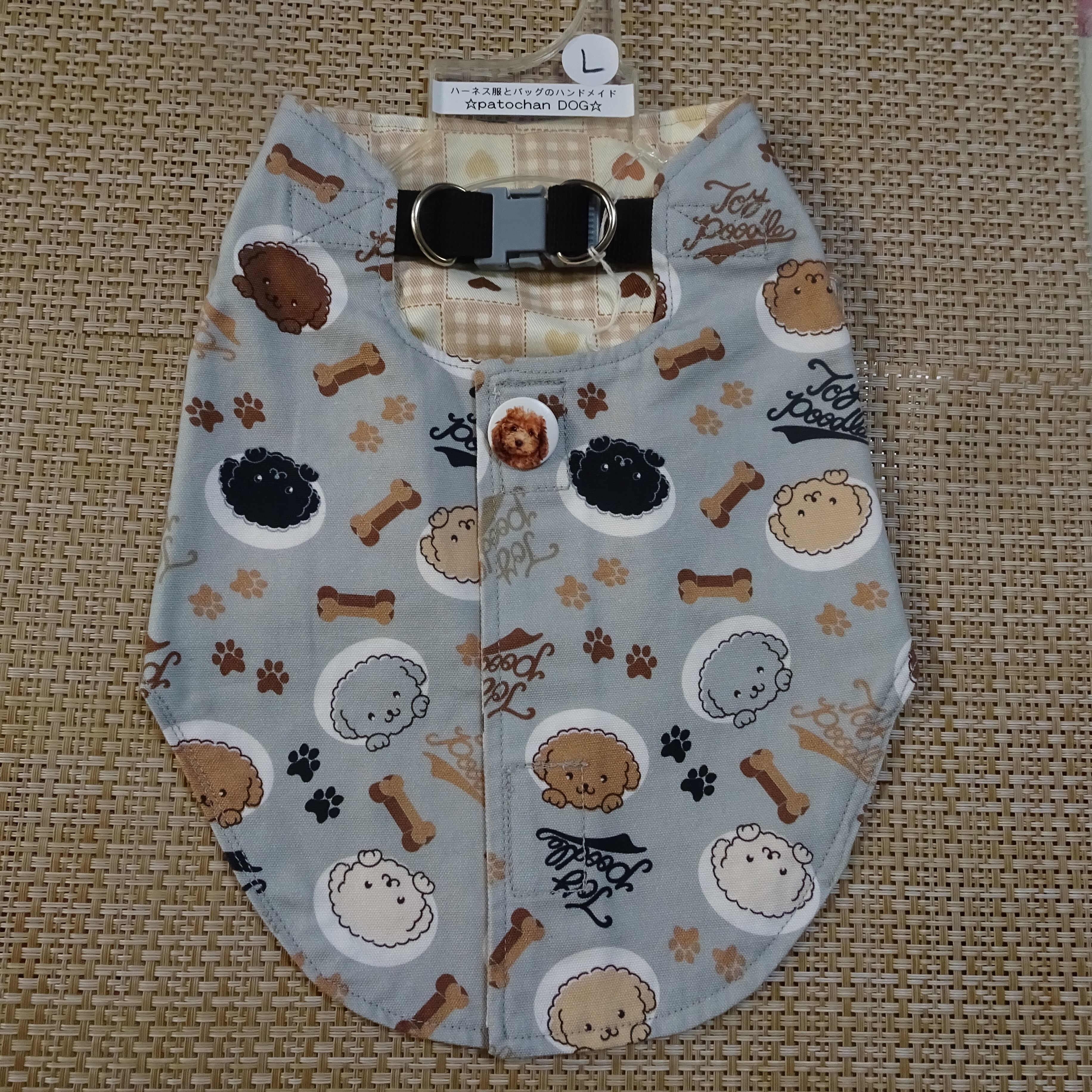 L:プードル顔柄・グレー:ロング丈ハーネス服