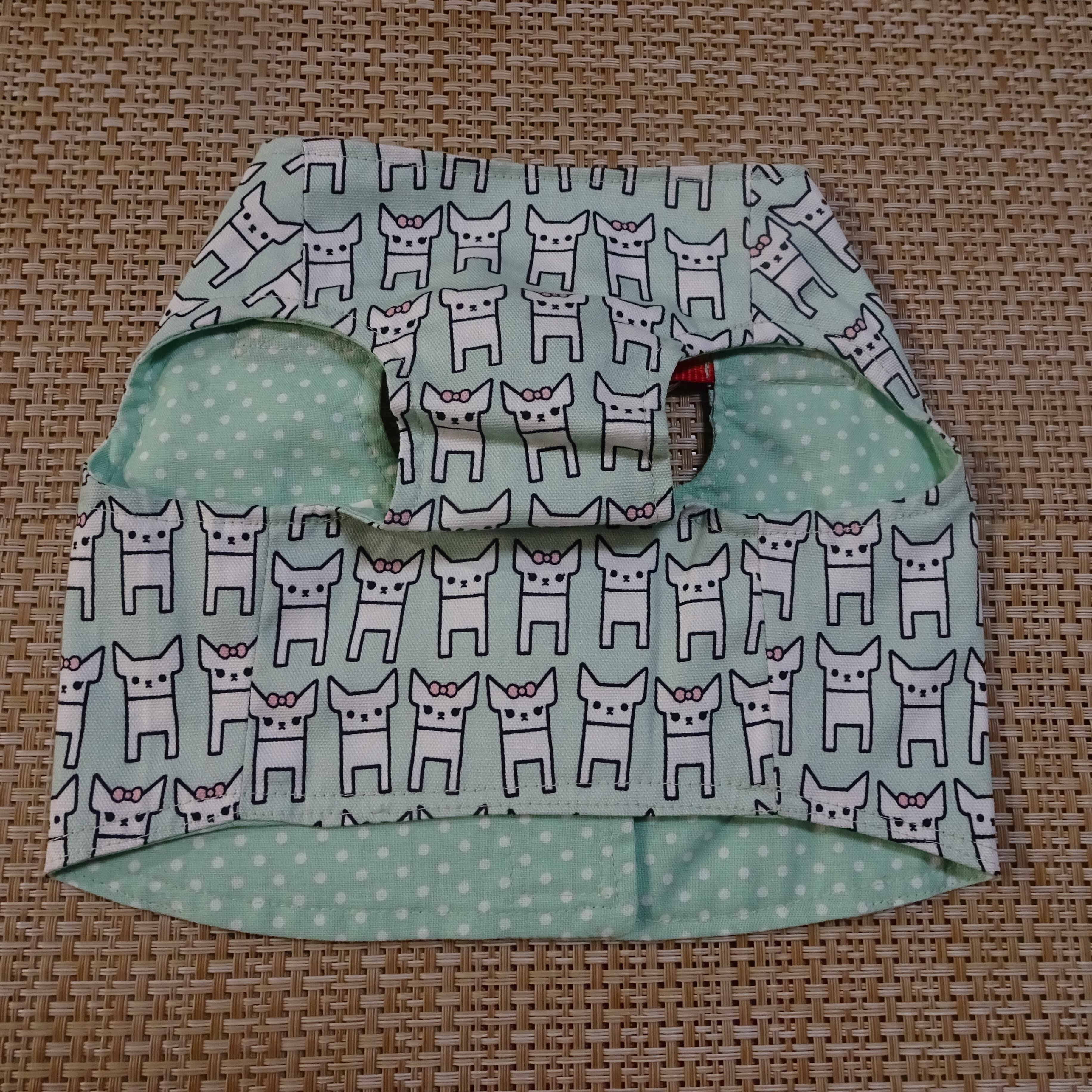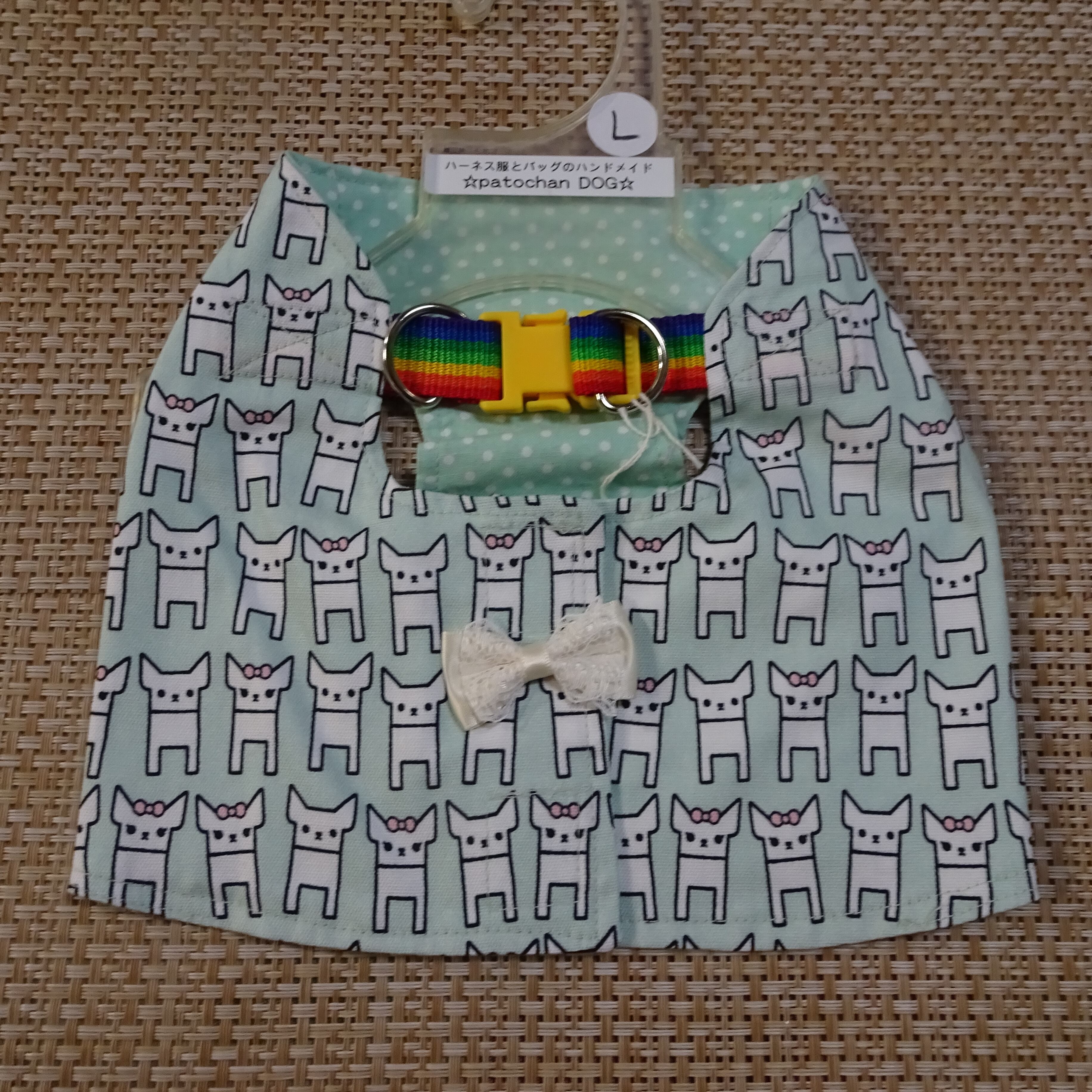 L:チワワ柄・グリーン:ショート丈ハーネス服