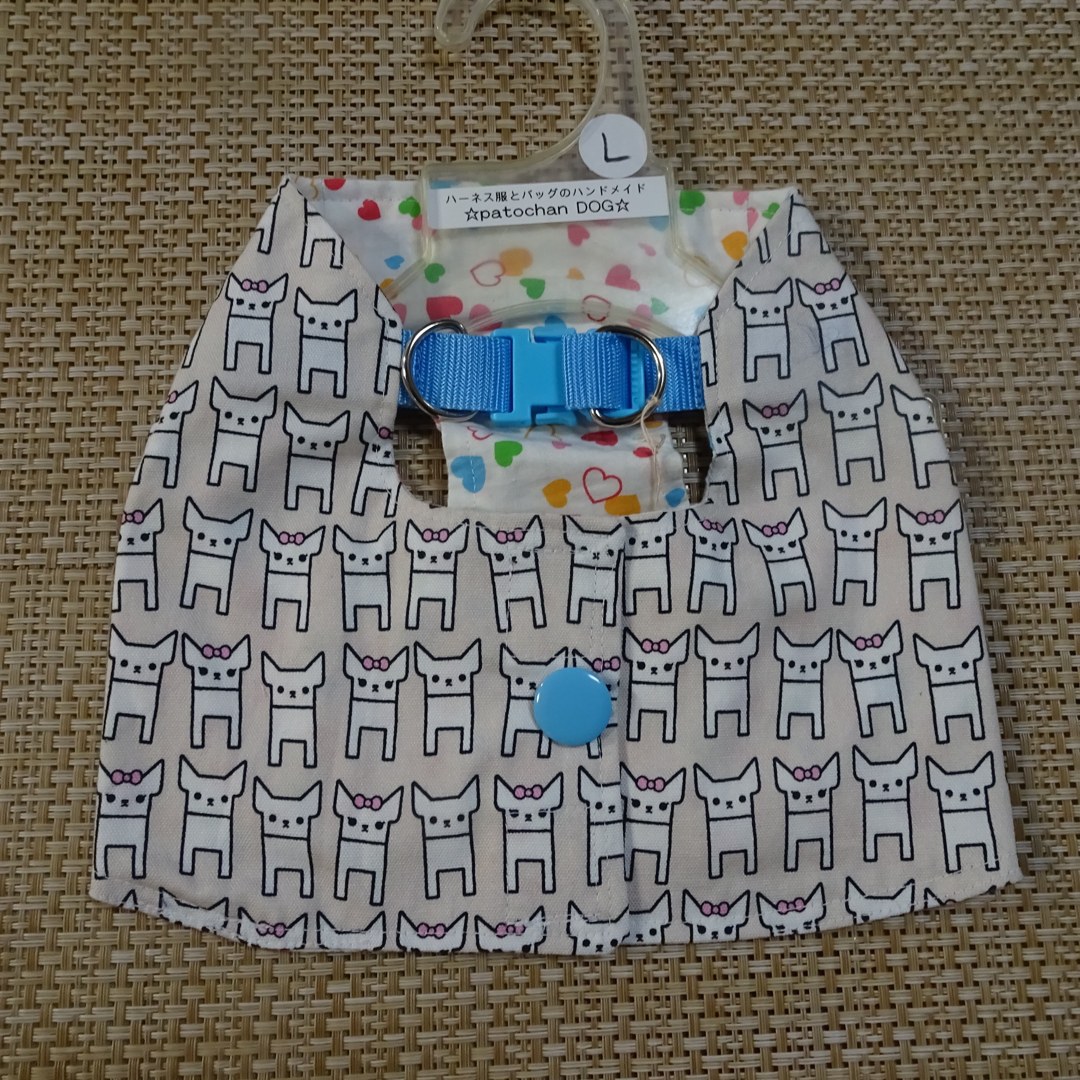 L:チワワ柄・ベージュ系::ショート丈ハーネス服