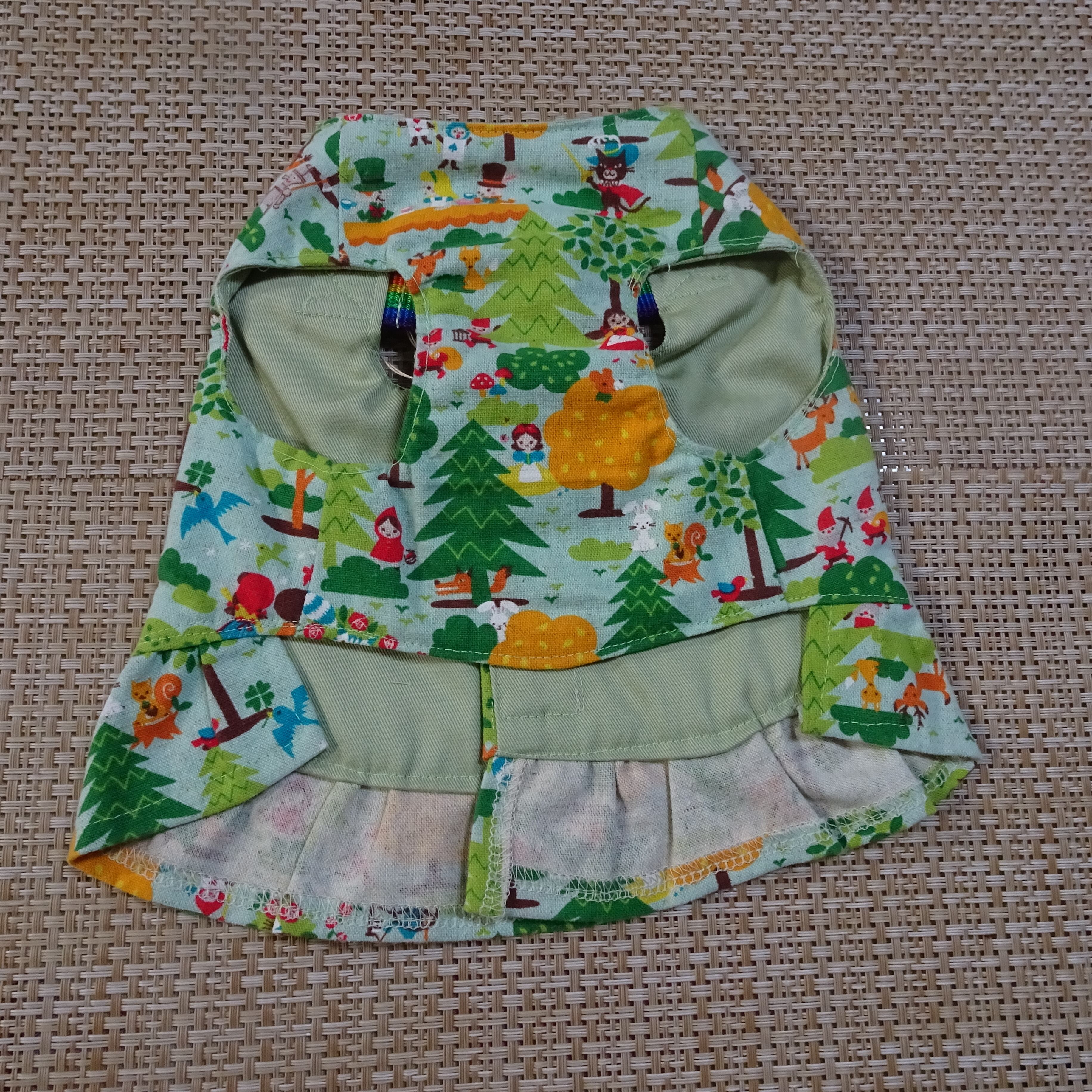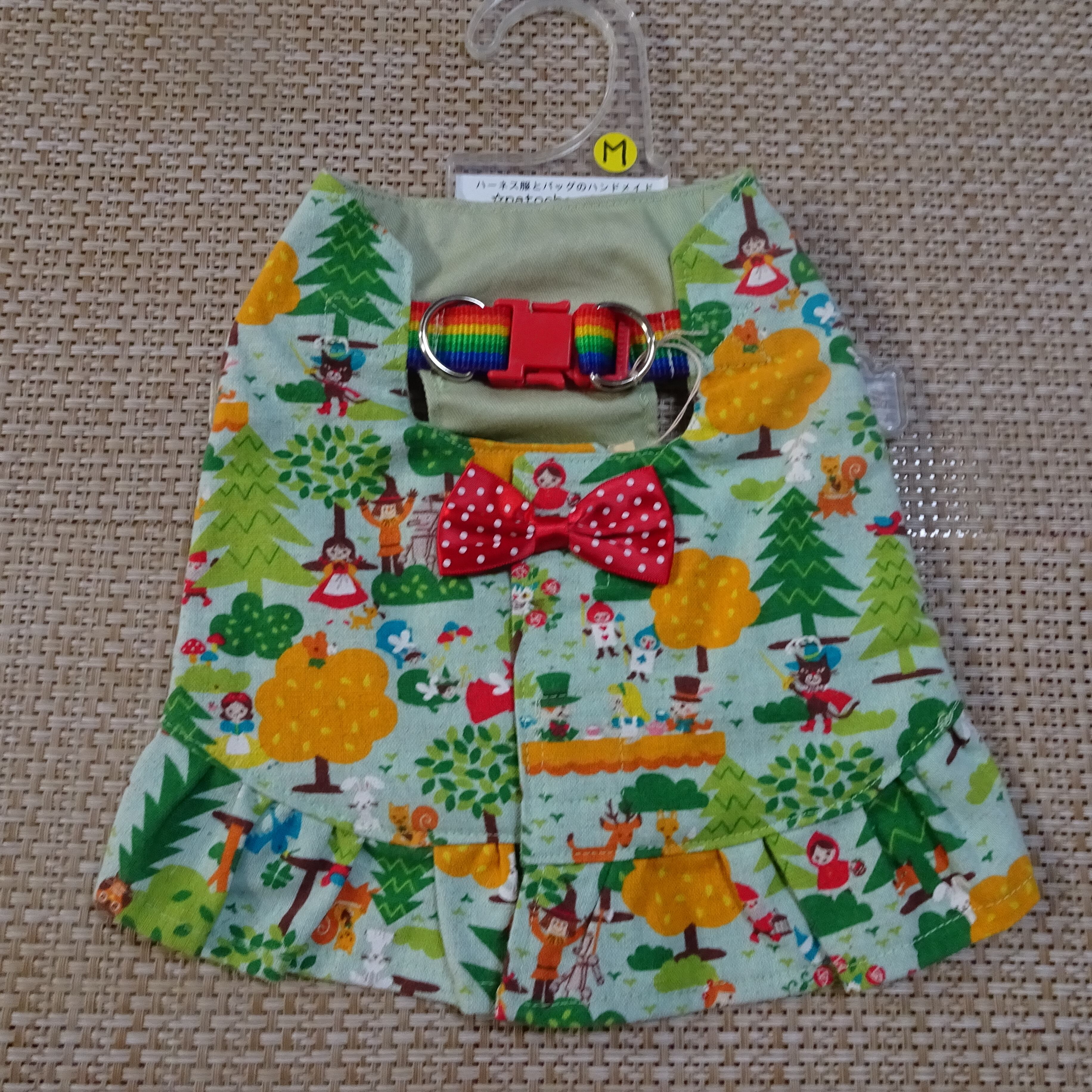 M:楽しい森柄・黄緑系:スカート付ハーネス服