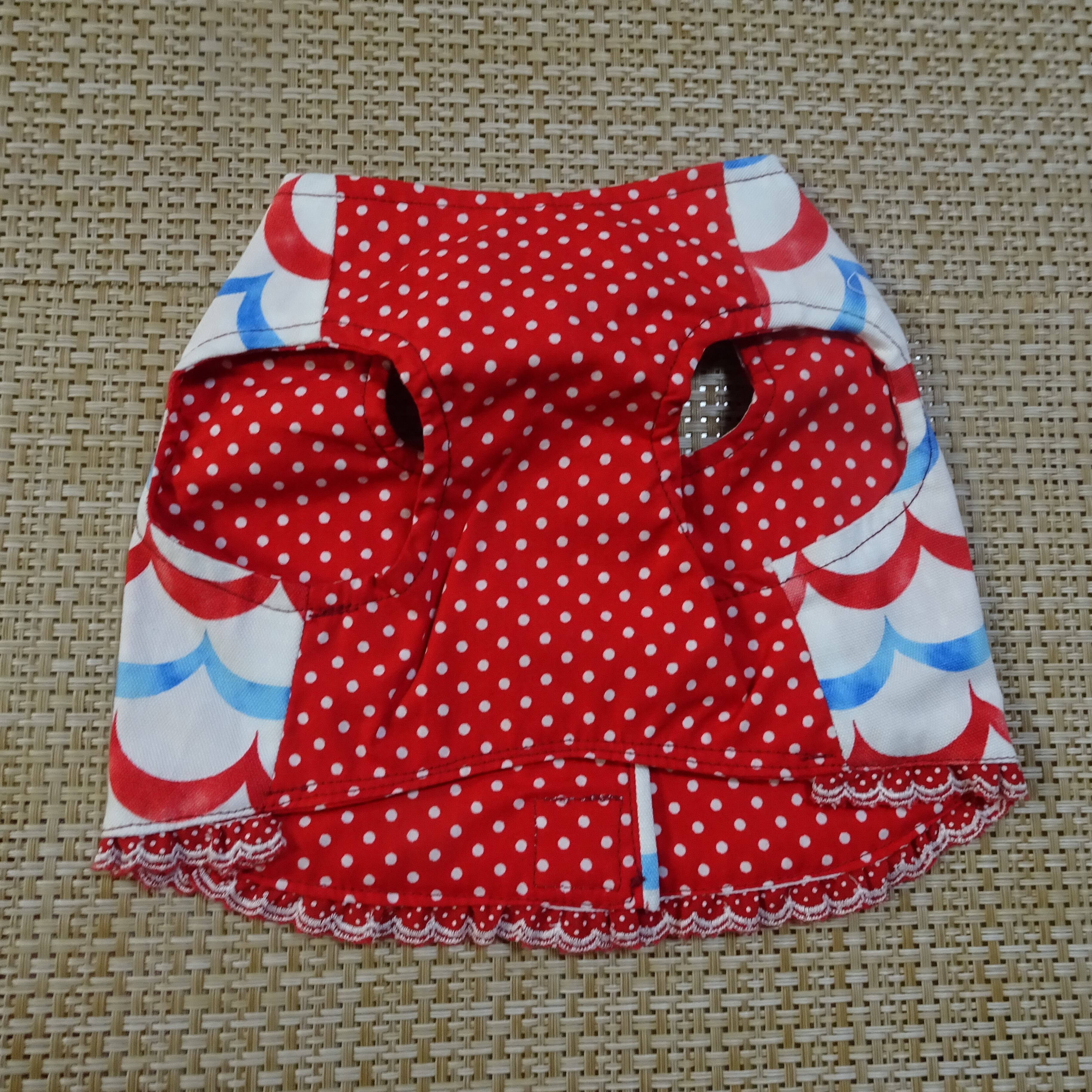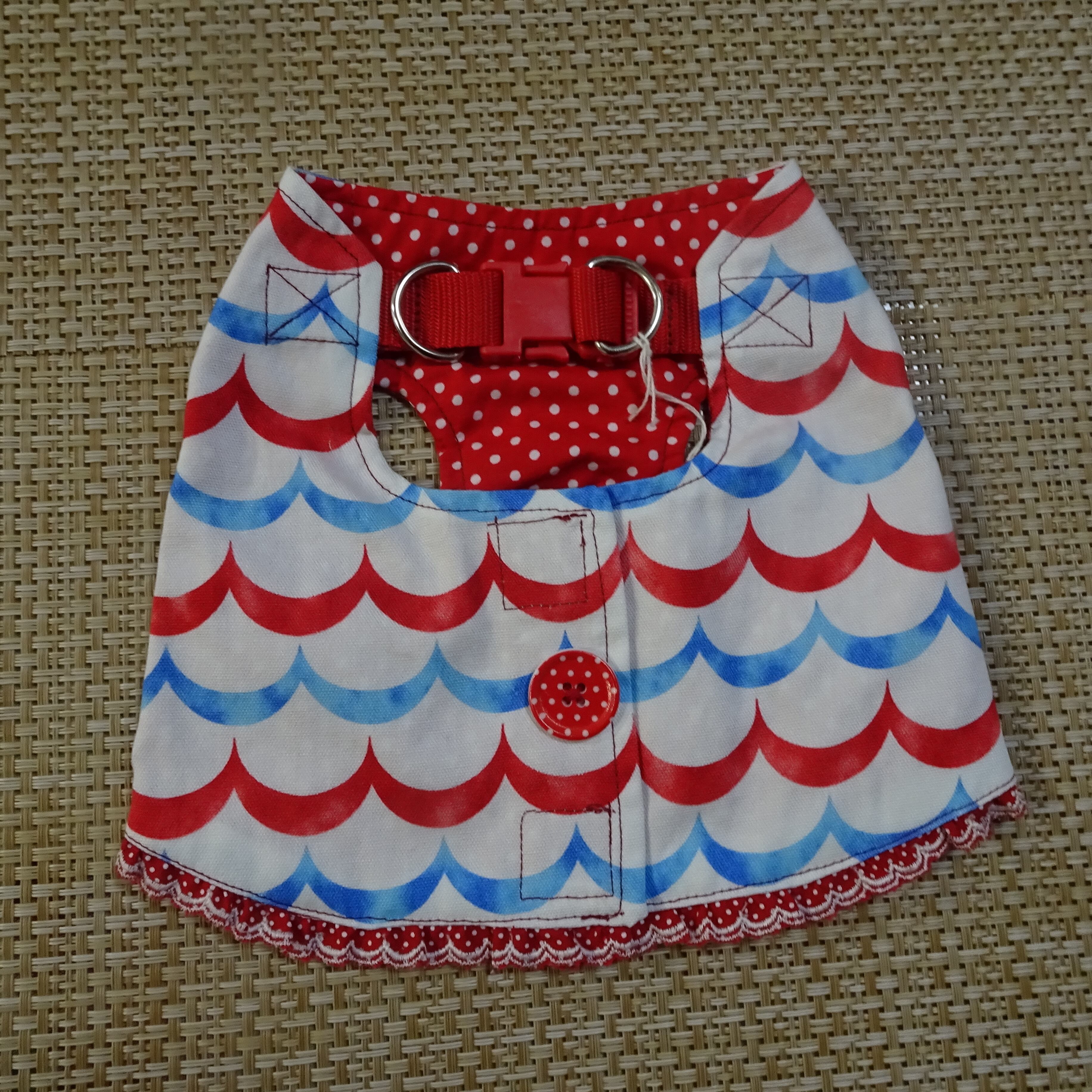 洋服にハーネス機能を付けたお散歩やお出かけに便利なショート丈ハーネス服です。