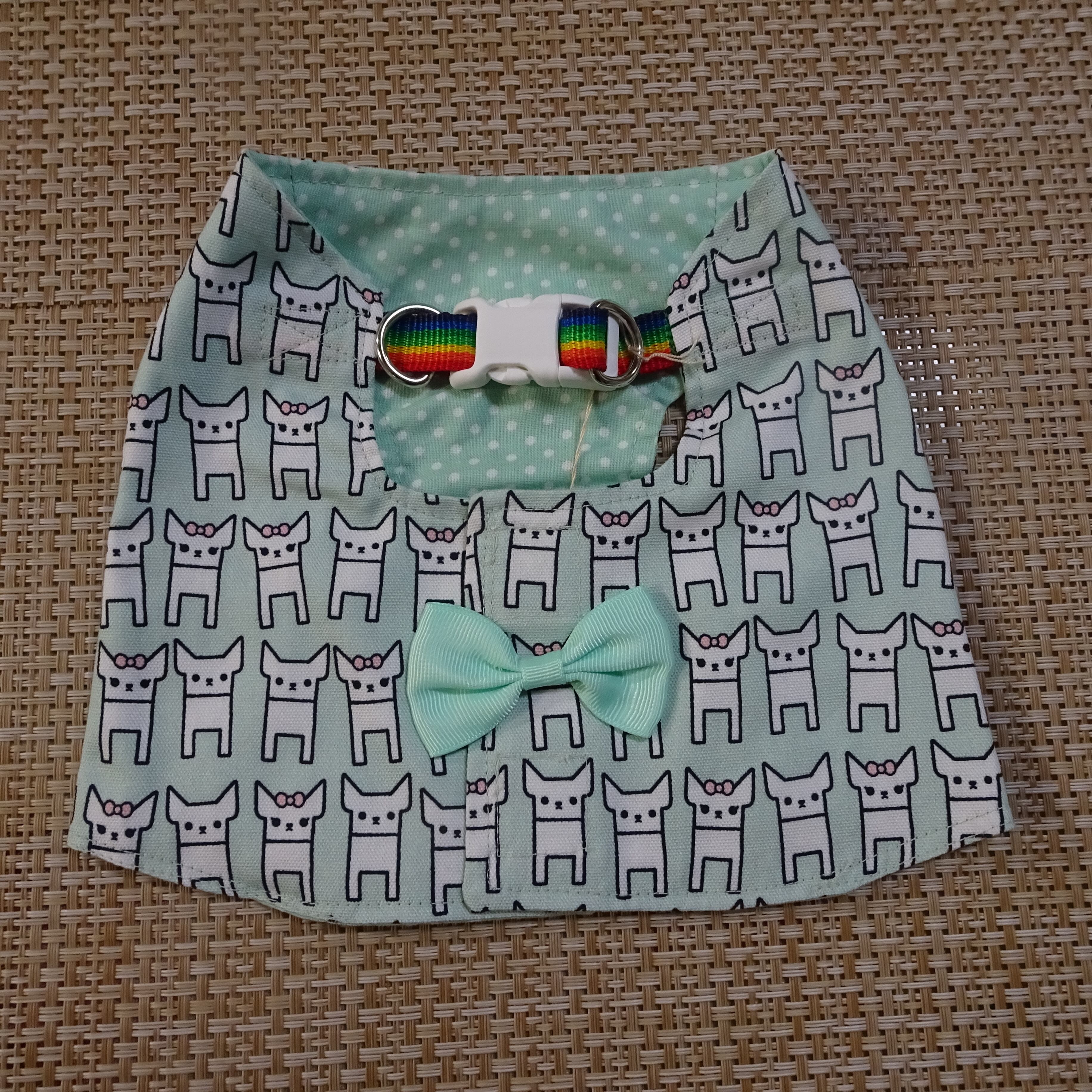 M:チワワ柄・グリーン:ショート丈ハーネス服