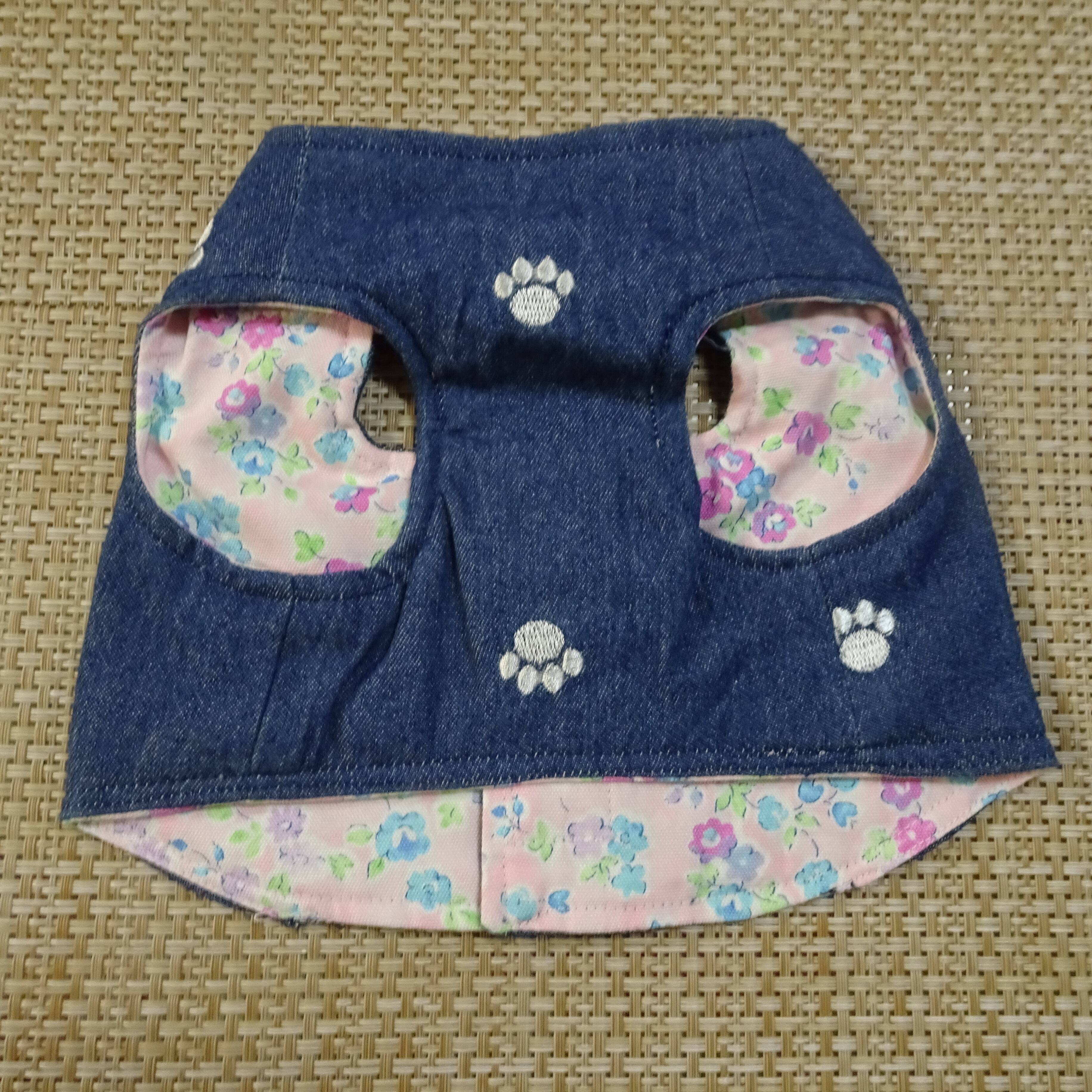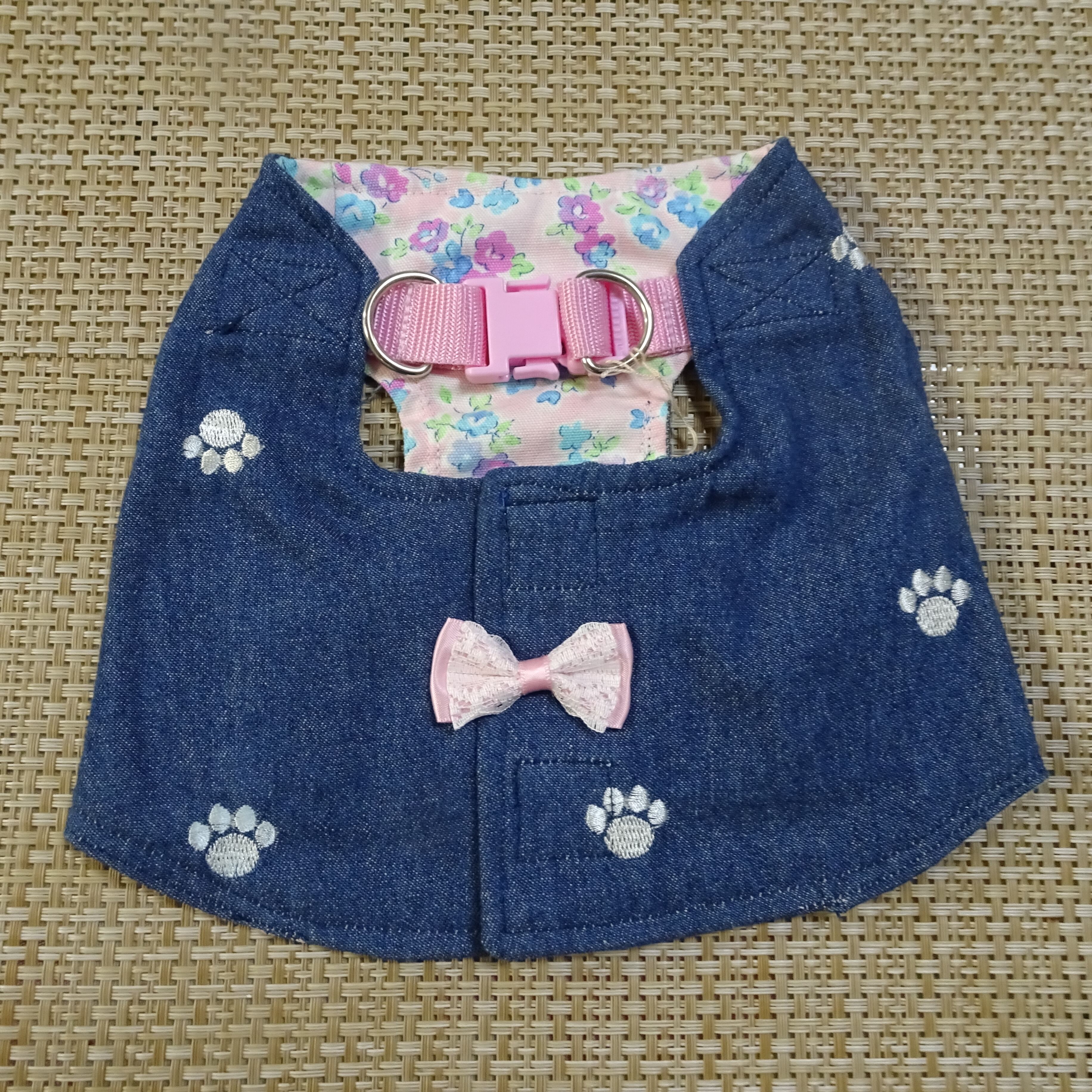 M:ソフトデニム・肉球柄・紺:ショート丈ハーネス服