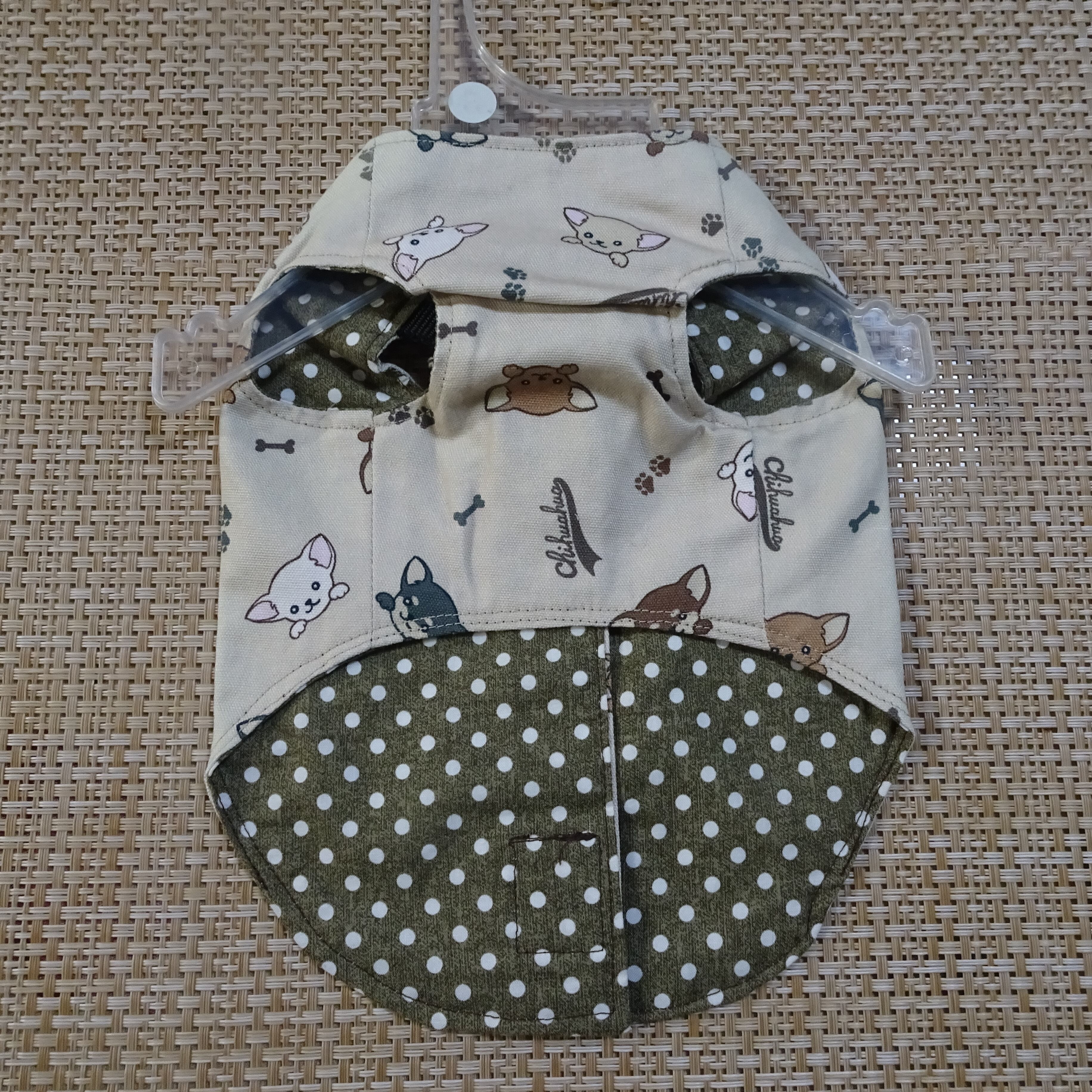S:チワワ柄・ベージュ:ロング丈ハーネス服
